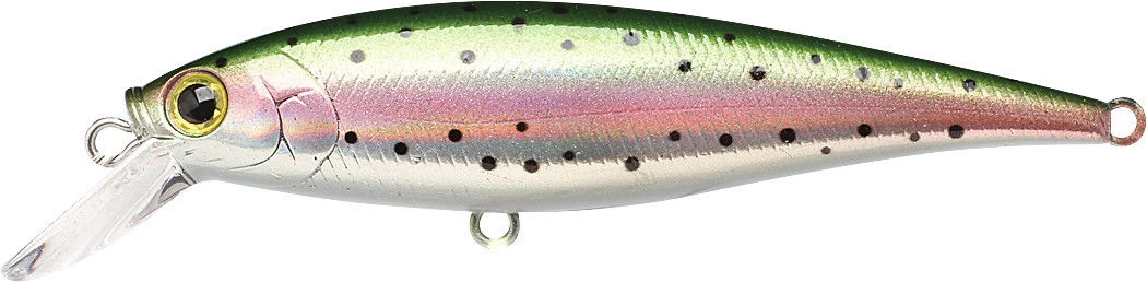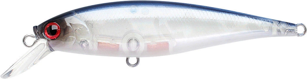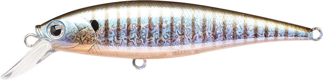 The Lucky Craft Pointer 78 is a 3 inch, 3/8 once suspending jerkbait that dives 4 to 5 feet. The Lucky Craft Pointer has been designed with a very low center of gravity through the use of special brass weights. The low center of balance causes the lure to wobble and vibrate whenever the retrieving motion is stopped. The Lucky Craft Pointer will suspend 4 -5 feet deep and will emit an intriguing bass-calling vibration, while in the suspended state. A short twitch of the fishing rod will generate the “Walk-the-Dog” action under the water.
