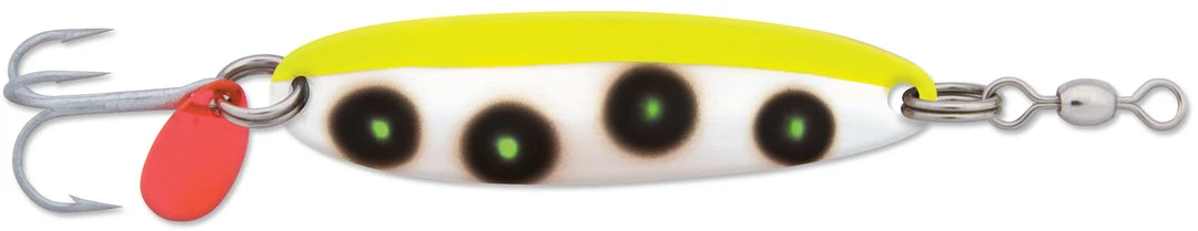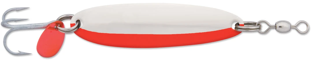 The Luhr-Jensen Krocodile Spoon is a versatile, multi-species spoon lure that can be cast, trolled, or jigged. This 3/16 ounce, 1 1/2 inch model is optimal for small to medium sized freshwater species, including all sorts of trout, from browns and brookies to rainbows and cutthroats, as well as kokanee, coho salmon, and smallmouth bass. Features corrosion-resistant finishes, heavy-duty construction, and red metal flipper tails. Available in a wide range of colors and metal finishes.